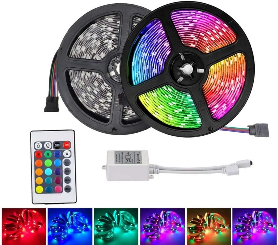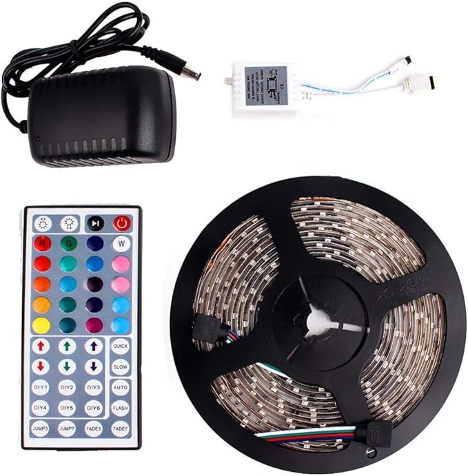 RGB SMD 3528 LED Strips Light – 10M Color Changing Rope Lights with 24key IR Remote Controller Kit and 12V 5A Power Supply