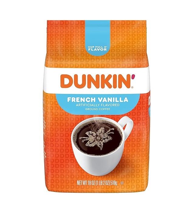 • Contains one (1) 18oz bag of Dunkin’ French Vanilla artificially flavored ground coffee