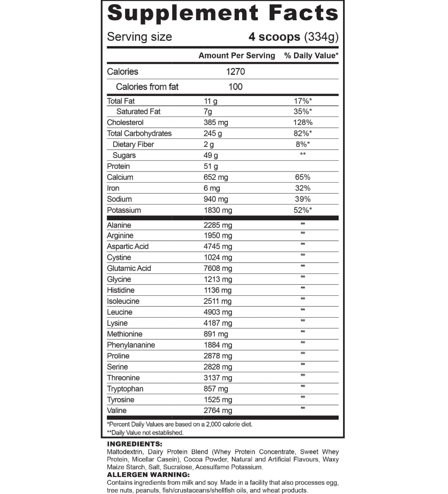 • Each serving delivers over 800 calories derived from high-quality protein and quickly digested carbohydrates.