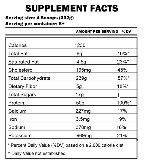 - 252 Grams of carbohydrates