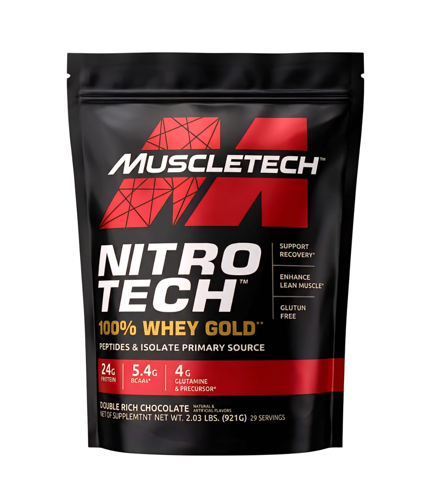 - FAST RECOVERY – MuscleTech Nitro-Tech Whey Gold has 24g of protein, 4g of glutamine & precursor and 5.5g of BCAA for better muscle protein synthesis and recovery