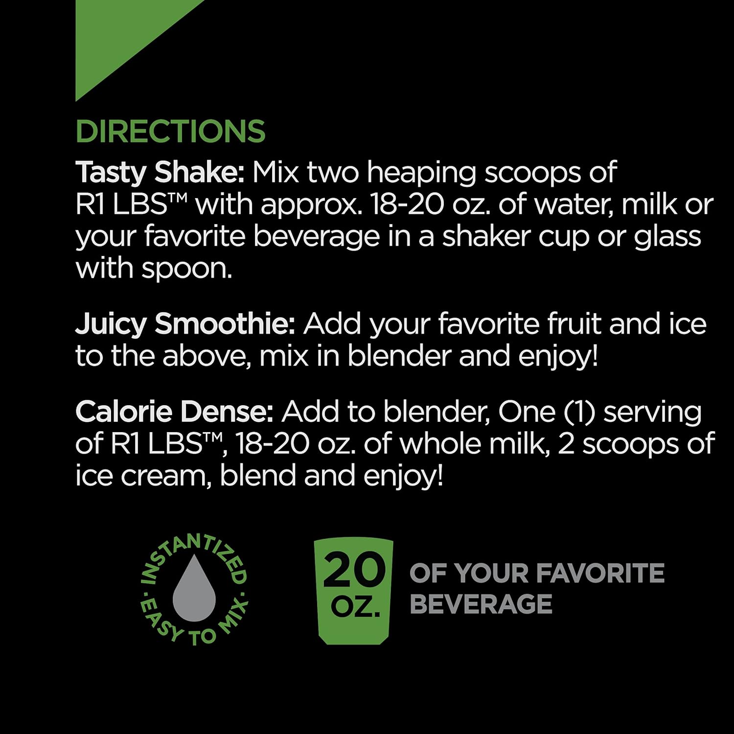 - HOW TO USE IT – R1 Mass Gainer should be combined with a high-calorie diet and weight training or other high-intensity exercise. Use it in conjunction with the food you normally eat for additional daily calories. Do not use in place of meals.