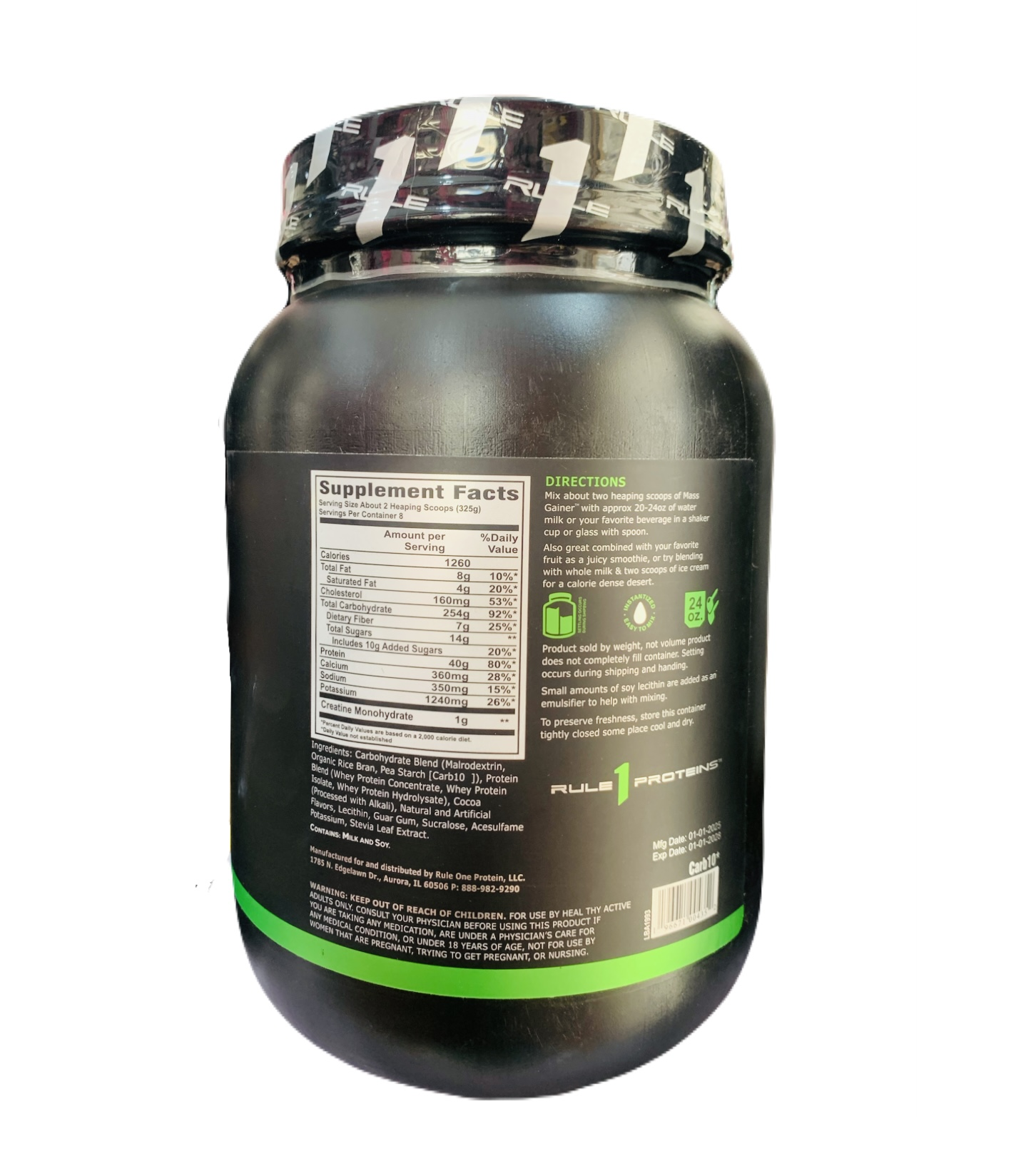 • HOW TO USE IT – R1 Mass Gainer should be combined with a high-calorie diet and weight training or other high-intensity exercise. Use it in conjunction with the food you normally eat for additional daily calories. Do not use in place of meals.